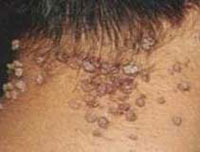 主要侵犯青少年,大多驟然發(fā)生,為米粒大到綠豆大扁平隆起的丘疹,表面光滑,質(zhì)硬,淺褐色或正常皮色,圓形、橢圓形或多角形,數(shù)目較多,多數(shù)密集,偶可沿抓痕排列成條狀(同形反應(yīng))。一般無自覺癥狀,偶有微癢。好發(fā)于顏面、手背及前臂等處。病程慢性,有時(shí)突然自行消失,亦可持續(xù)多年不愈,愈后不留瘢痕。