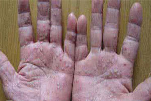 2、膿包型牛皮癬:初起為炎性紅斑,繼而在紅斑上發(fā)生密集的、針頭至粟米大小的、淺在的無菌性膿皰。部分可融合或增大呈“膿”狀。常因膿皰破裂而糜爛。膿皰在數(shù)天后干涸。
