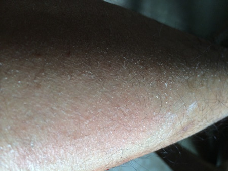 3、銀屑?。?/strong>身上上起皮還有可能是患上了銀屑病。銀屑病又稱為牛皮癬,是一種常見的慢性炎癥性皮膚病。它屬于多基因遺傳的疾病,可由多種激發(fā)因素,如創(chuàng)傷、感染、藥物等都可能在易感個體中誘發(fā)該病。典型的皮膚表現(xiàn)是境界清楚的具有銀白色鱗屑的紅色斑塊。