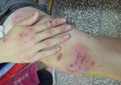急性濕疹:自覺(jué)劇烈瘙癢,紅斑、丘疹或水皰密集成片,易滲出,邊緣不清,周?chē)⒃谛∏鹫?、丘皰疹,常伴糜爛、結(jié)疤,如繼發(fā)感染,可出現(xiàn)膿包或濃痂。處理適當(dāng)則炎癥減輕,皮損可在2~3周后消退,若常反復(fù)發(fā)作并可轉(zhuǎn)為亞急性或慢性濕疹。