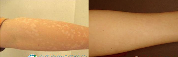 3.白斑型:除去鱗屑或痊愈后,遺留色素暫時減退。此型預(yù)示本病處于緩解階段。