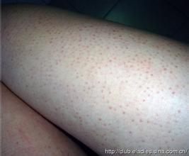 2、從外觀上看,有針點般的小丘疹,散在性分布,粗糙,顏色呈肉色、紅褐色、棕色或灰黑色,看起來很像“雞皮疙瘩”,大部分的疹子均無痛癢癥狀。